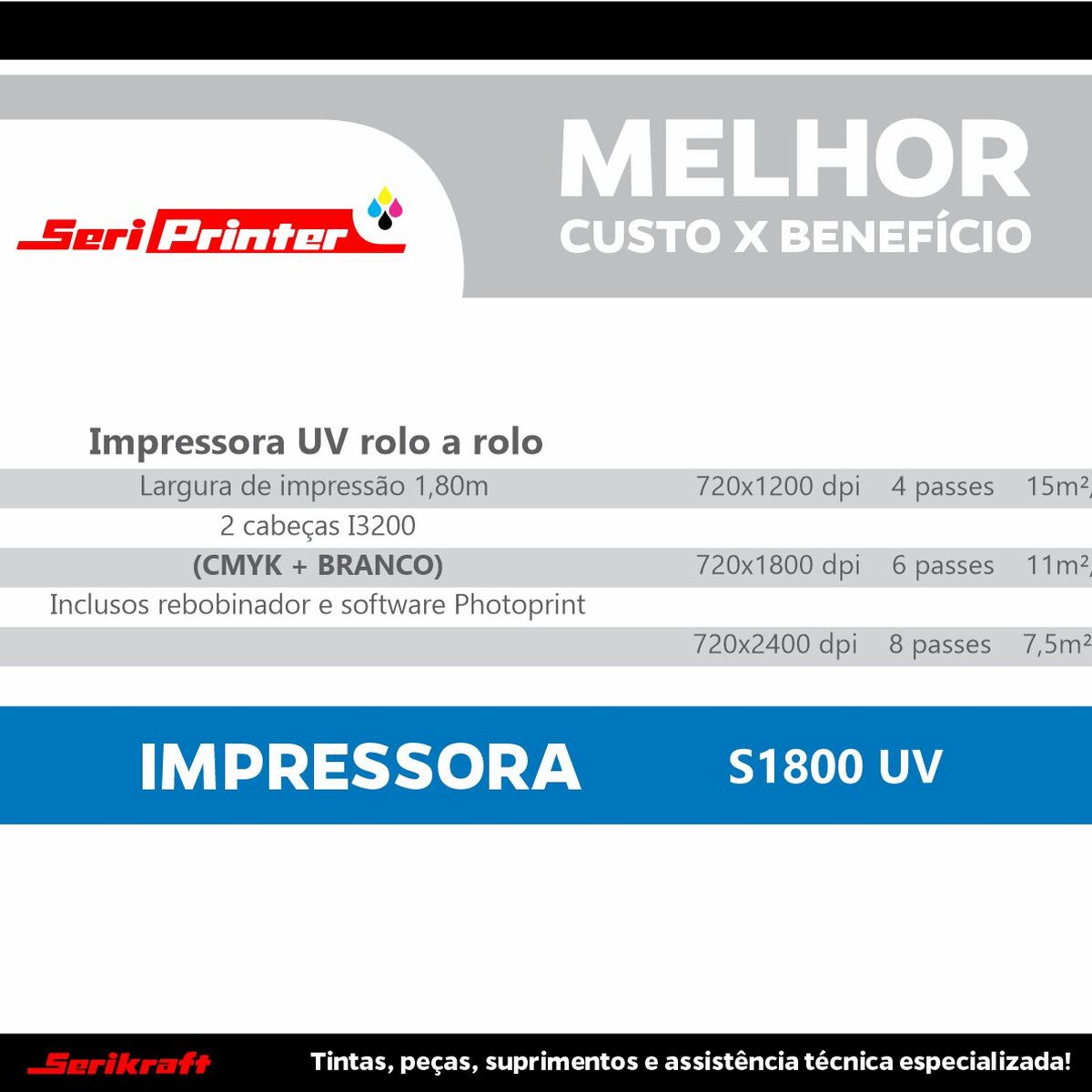 Apresentamos a Impressora SERIPRINTER UV 1802, ideal para quem busca qualidade, produtividade e custo-benefício de verdade!